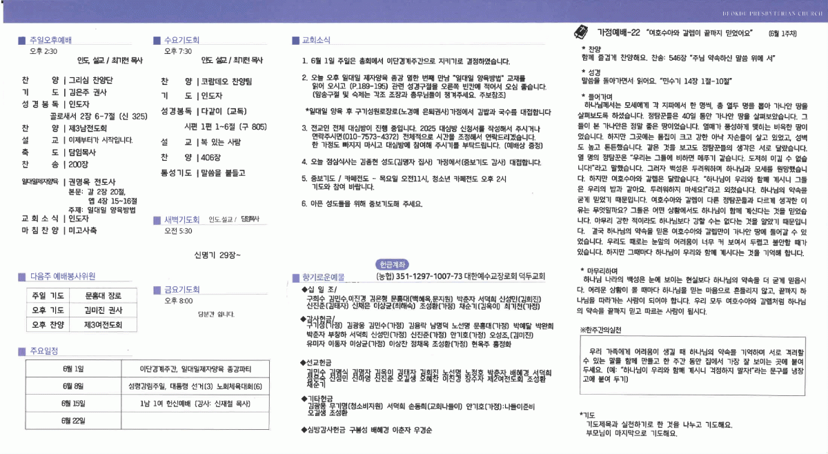 덕두교회 주보