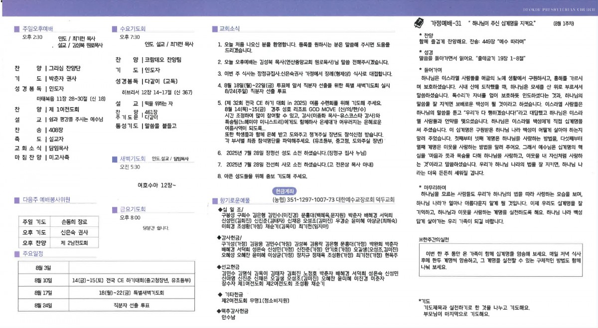 덕두교회 주보